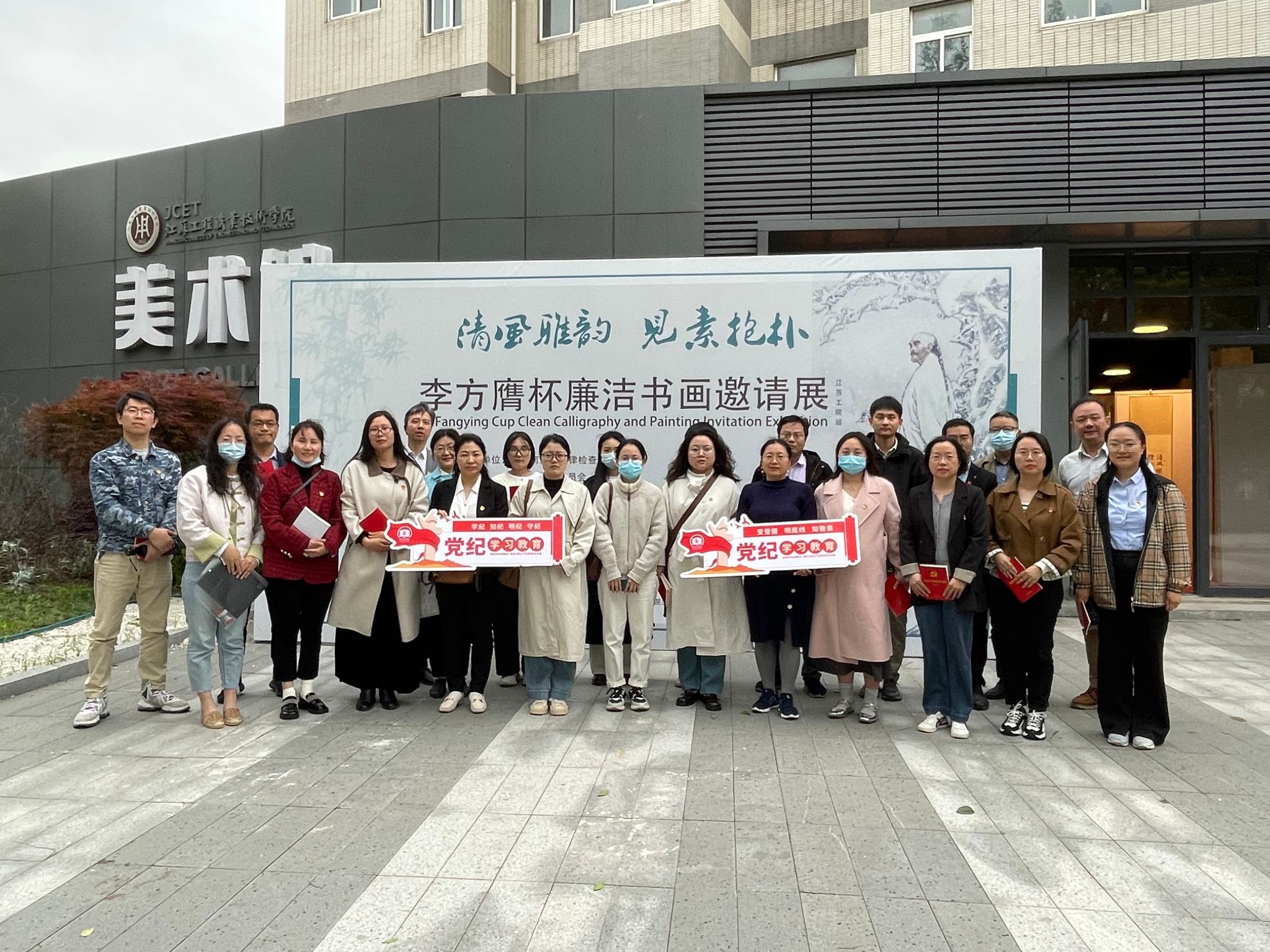 为深入学习宣传贯彻党的二十大精神,教育引导党员干部和广大师生坚持用中华优秀传统文化启智润心,涵养克己奉公、清廉自守的精神境界,4月19日下午,马克思主义学院党总支带领全院党员教师前往校美术馆参观“清风雅韵 见素抱朴”李方膺杯廉洁书画邀请展。本次活动是马克思主义学院党总支宣传贯彻学校关于做好党纪学习教育的重要内容之一。活动中,党员教师们近距离感受了中国书法艺术的独特魅力,还共同观看廉政微电影《清官李方膺》,纷纷对李方膺抗垦入狱的不幸表示同情,对其表现出的清正廉洁表示激赏。观展期间,马克思主义学院党总支书记钱晋还利用场馆资源,现场为党员同志们做了一个示范微党课,对新修订的《中国共产党纪律处分条例》进行了一次导学,就条例当中的相关的内容,做了相应的阐释同时对各支部后续学习做了进一步的要求和部署。(马克思主义学院 季晨/文 周欢/图 张甜甜/推荐 钱晋/审核)