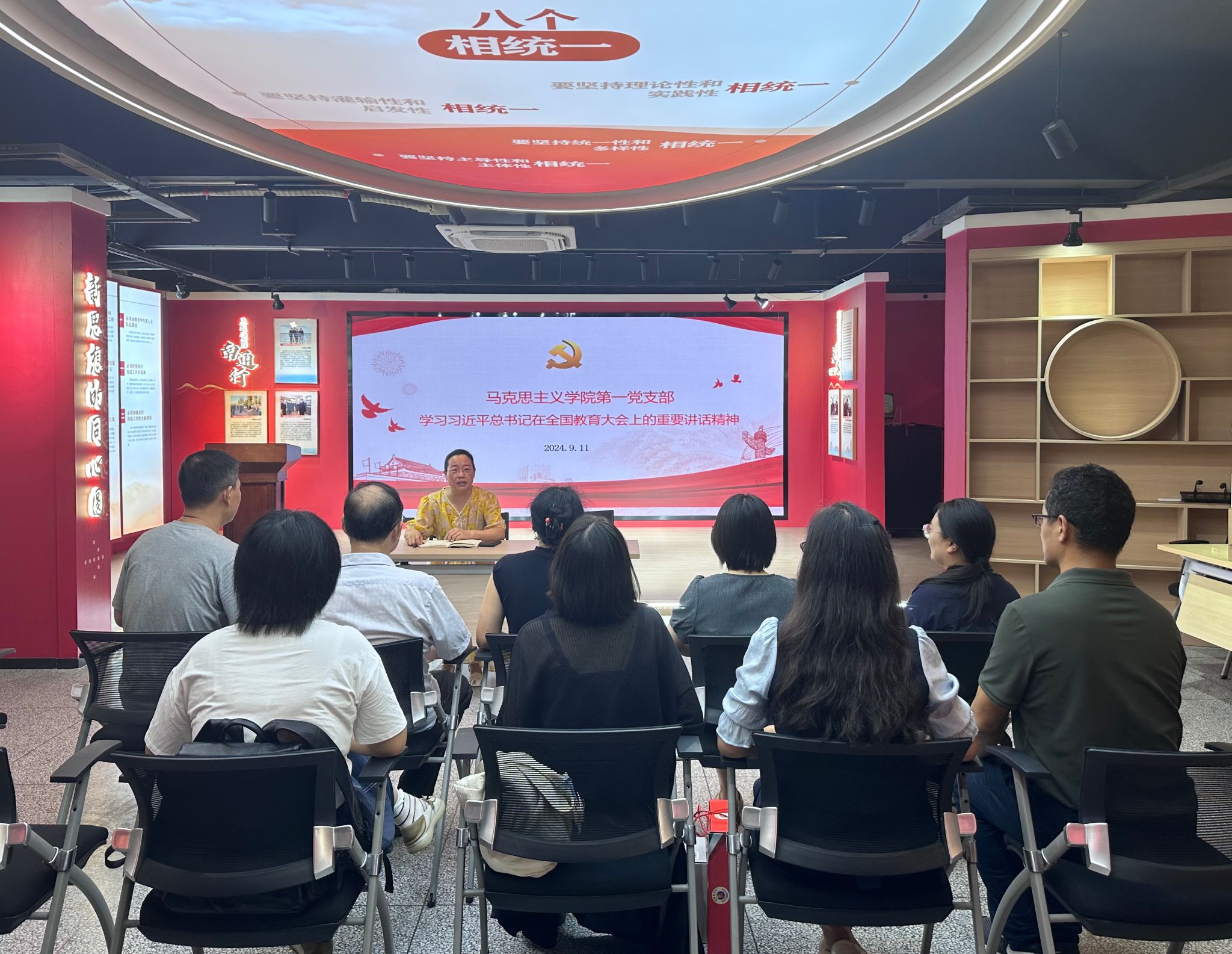 9月11日,马克思主义学院第一党支部组织全体党员学习习近平总书记在全国教育大会上的重要讲话精神,并围绕讲话精神进行深入研讨。支部全体党员参加会议,支部书记刘兵主持会议。