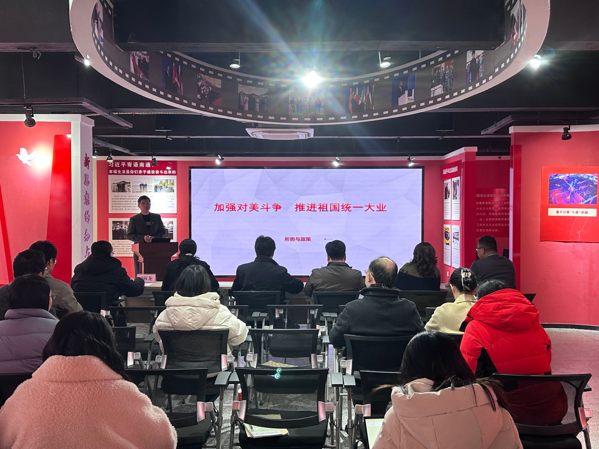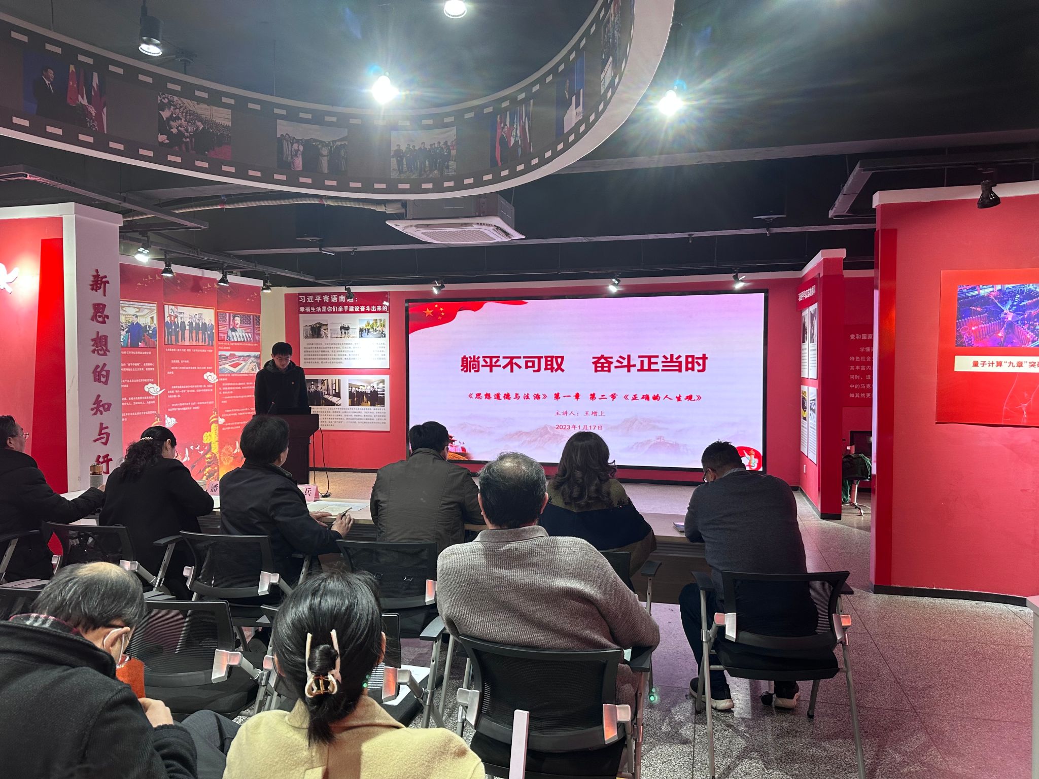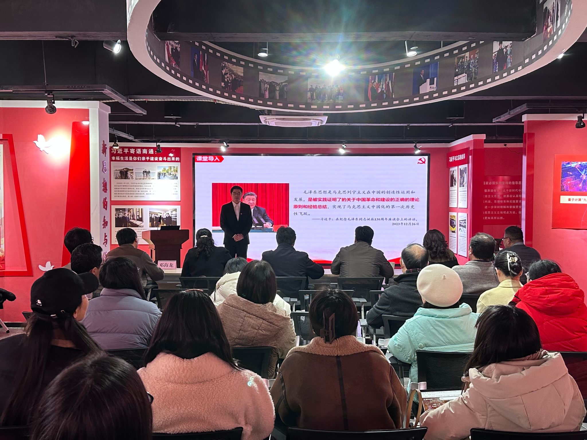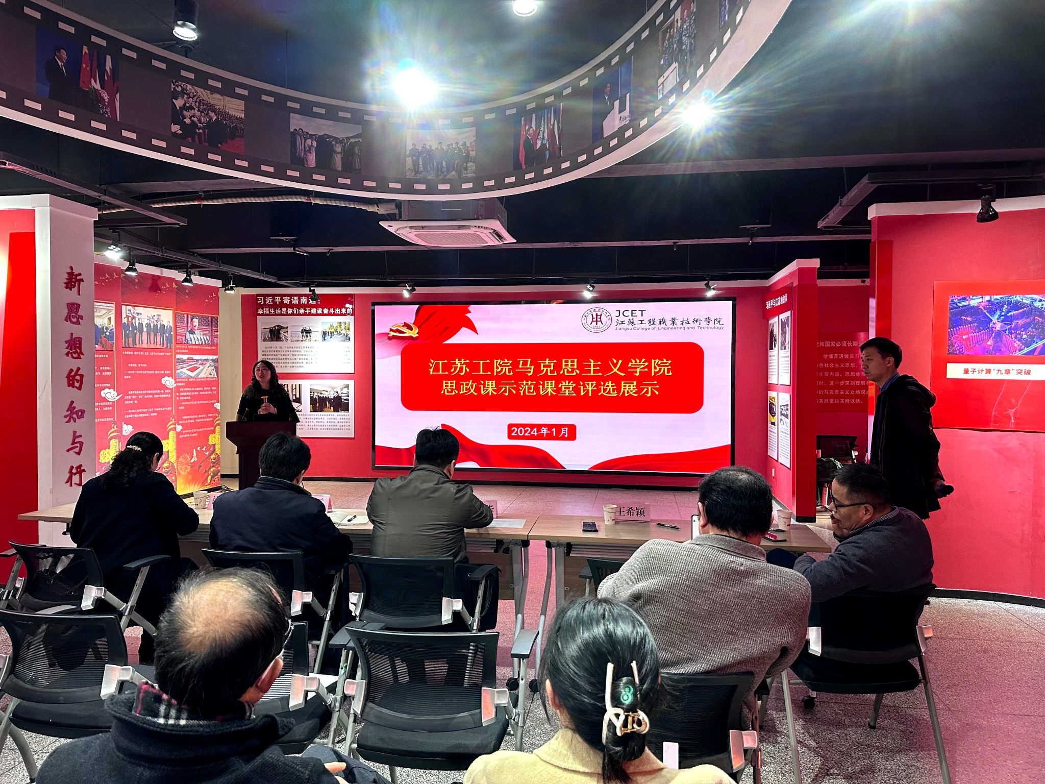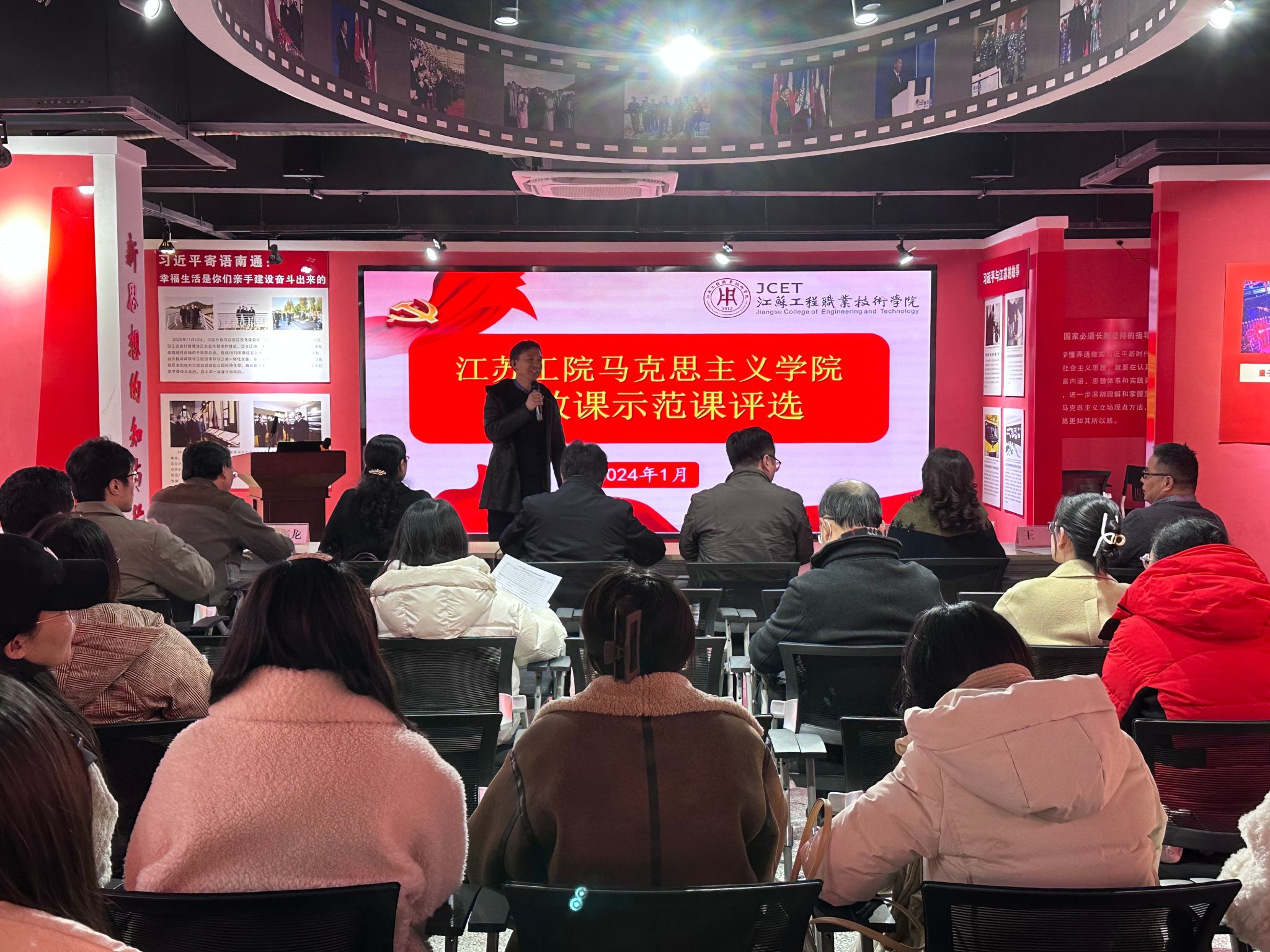 1月18日下午,马克思主义学院在新思想践悟馆举办思政课示范课评选活动。校党委委员、副书记邓海龙出席活动。南通师范高等专科学校马克思主义学院孙红兵,南通职业大学马克思主义学院院长任海华、教授潘敏,校党委宣传部部长王希颖,校马克思主义学院院长王飞教授等担任活动评委。学院党总支书记钱晋和全体思政教师现场观摩活动。本次活动由学院副院长朱建主持。