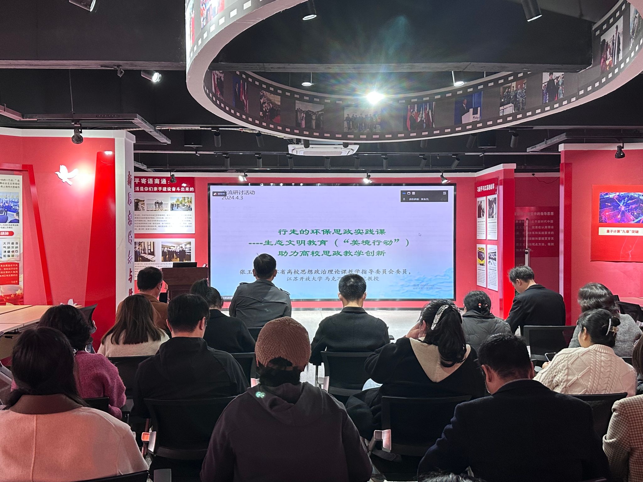 当天的活动中,江苏省高校思政课教学指导委员会委员、江苏开放大学马克思主义学院教授张玉兰还应邀为全体教师做了思政课实践教学研究专题讲座。她以“行走的思政实践课——生态文明教育(‘美境行动’)助力高校思政教学创新”为主题,通过详实的案例数据、精细的方案设计、严格的实施要求,全面展示了她指导开展思政实践课的教师情怀、具体做法和成果成效,为我校思政实践课教学改革提供了优秀的教学范式。在问答环节,张玉兰教授还在线与教师们进行互动,热心解答了“如何将思政实践课覆盖更多学生”“思政实践课的评价方式”等问题,在听、问、答的互动中,增强了教学实效。