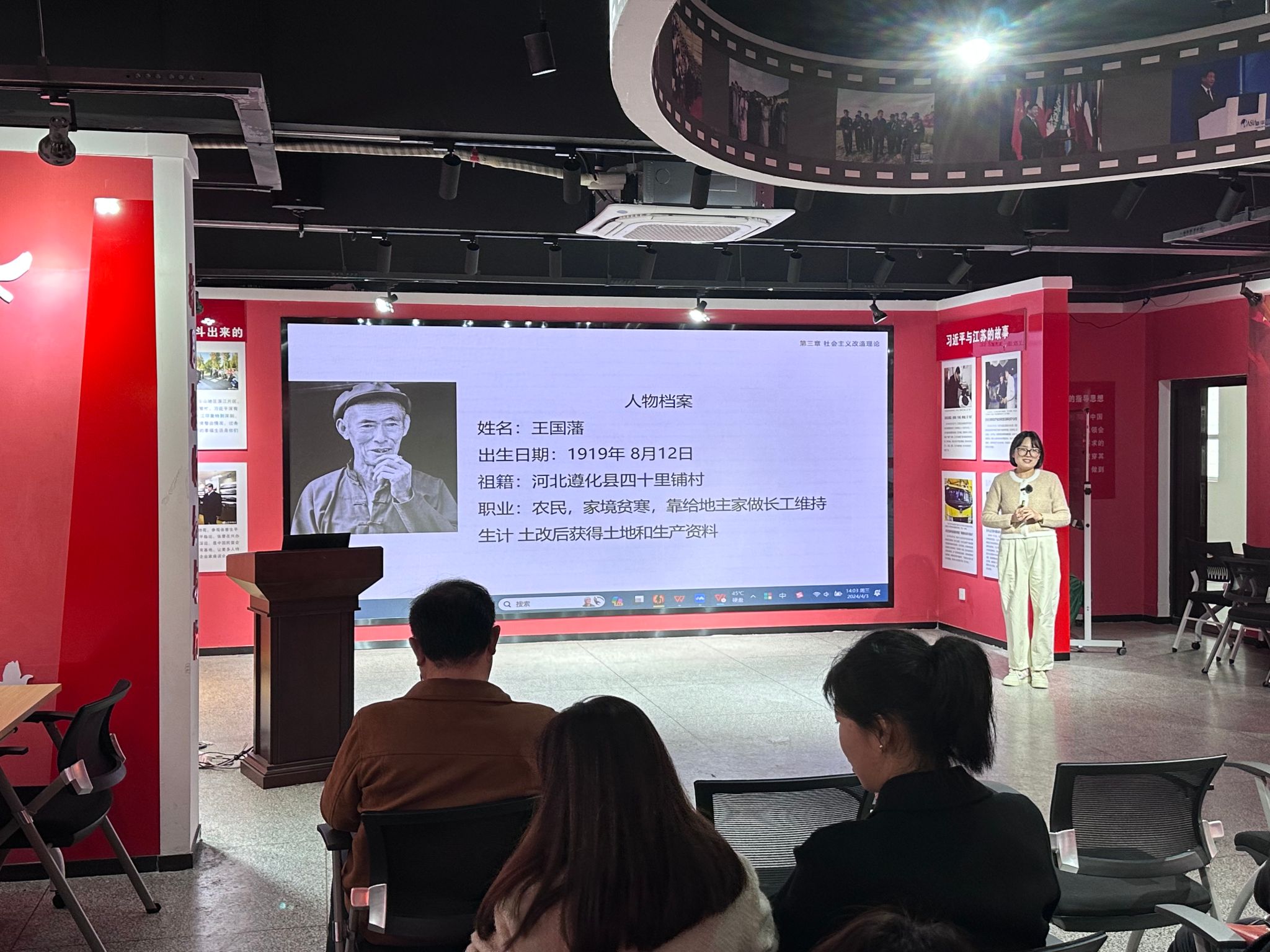 “一周一评课”活动主要围绕思政课课堂教学开展,全体教师根据抽签顺序进行20分钟的真实课堂讲授,所有教师在观摩后都要对其教学表现进行评价,并由所属教研室进行评课意见整理,用于日常集体备课和磨课,实现全员大练兵。来自习近平新时代中国特色社会主义思想概论教研室的胡梦莉老师首先进行了“农业社会主义改造”这一章节的教学展示,内容选自教材《毛泽东思想和中国特色社会主义理论体系概论》第三章。她从农业改造的必要性、遵循原则、实施方式以及正反两方面的评价等方面,借助人物故事、师生互动、视频引导等方式,生动讲述了对农业的社会主义改造全过程。胡梦莉良好的教态、生动的讲授得到了大家的一致认可。
