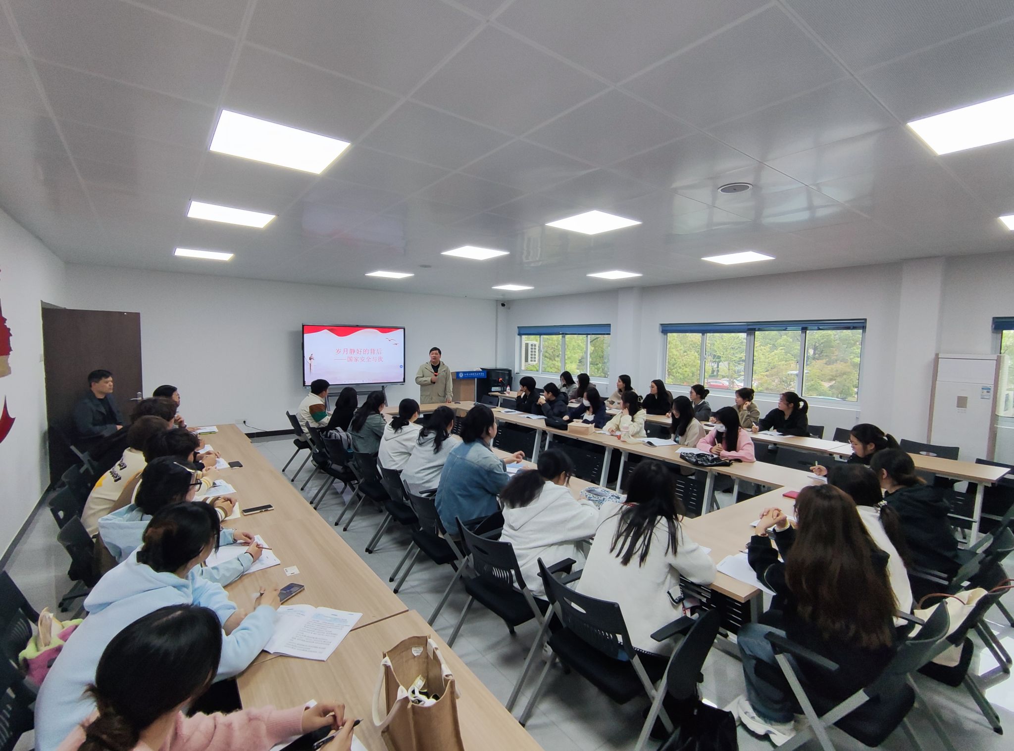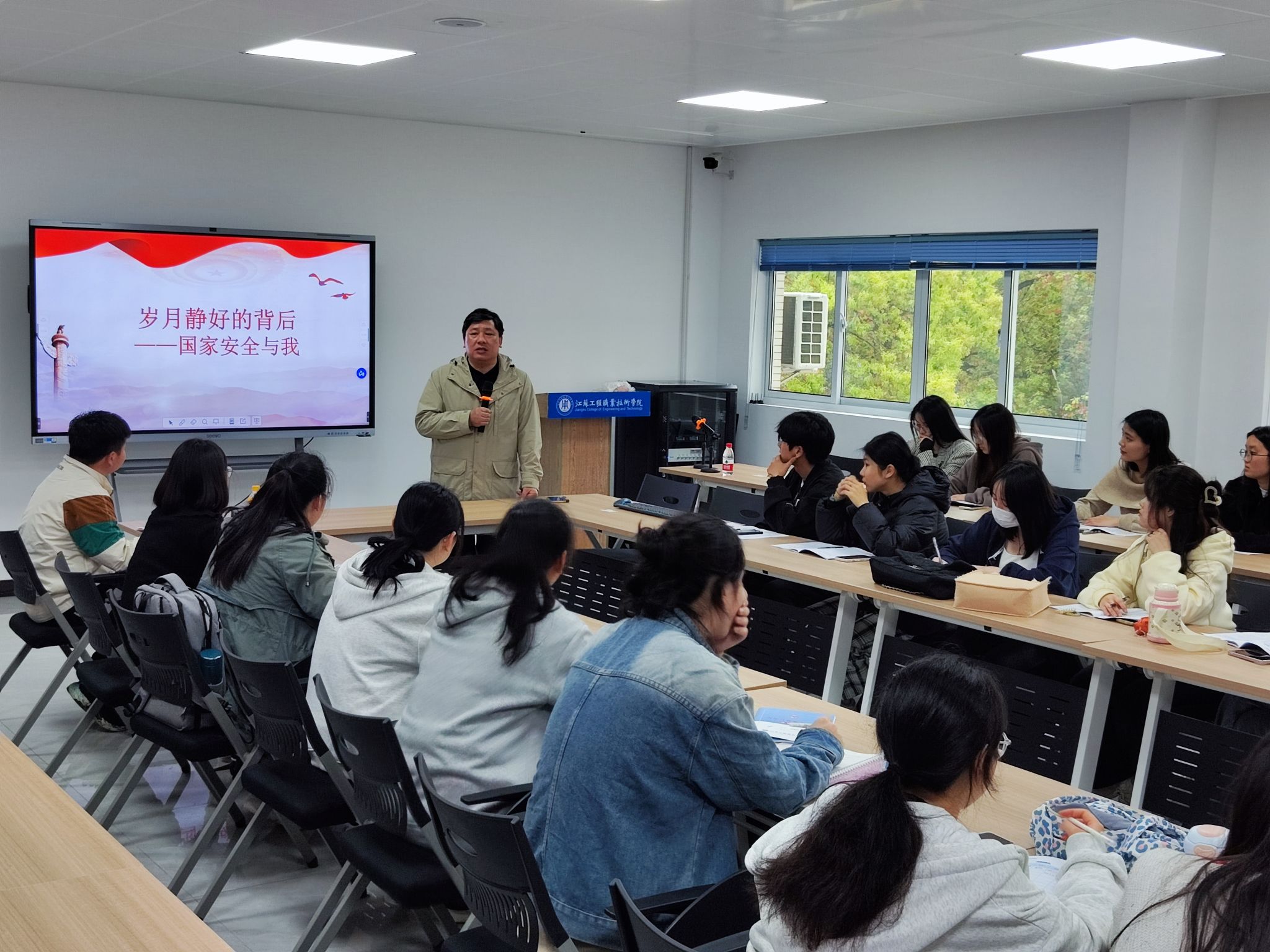 为有效落实教育部、省教育厅和学校关于开展“总体国家安全观·创新引领10 周年”主题活动的相关部署,4月12日中午,马克思主义学院“形势与政策”教研室的周慧来老师走进崇川校区学生一站式服务中心,为校团委青马班学员作了题为“岁月静好的背后——国家安全与我”的讲座。活动由马克思主义学院第四党支部书记薛宝志主持。