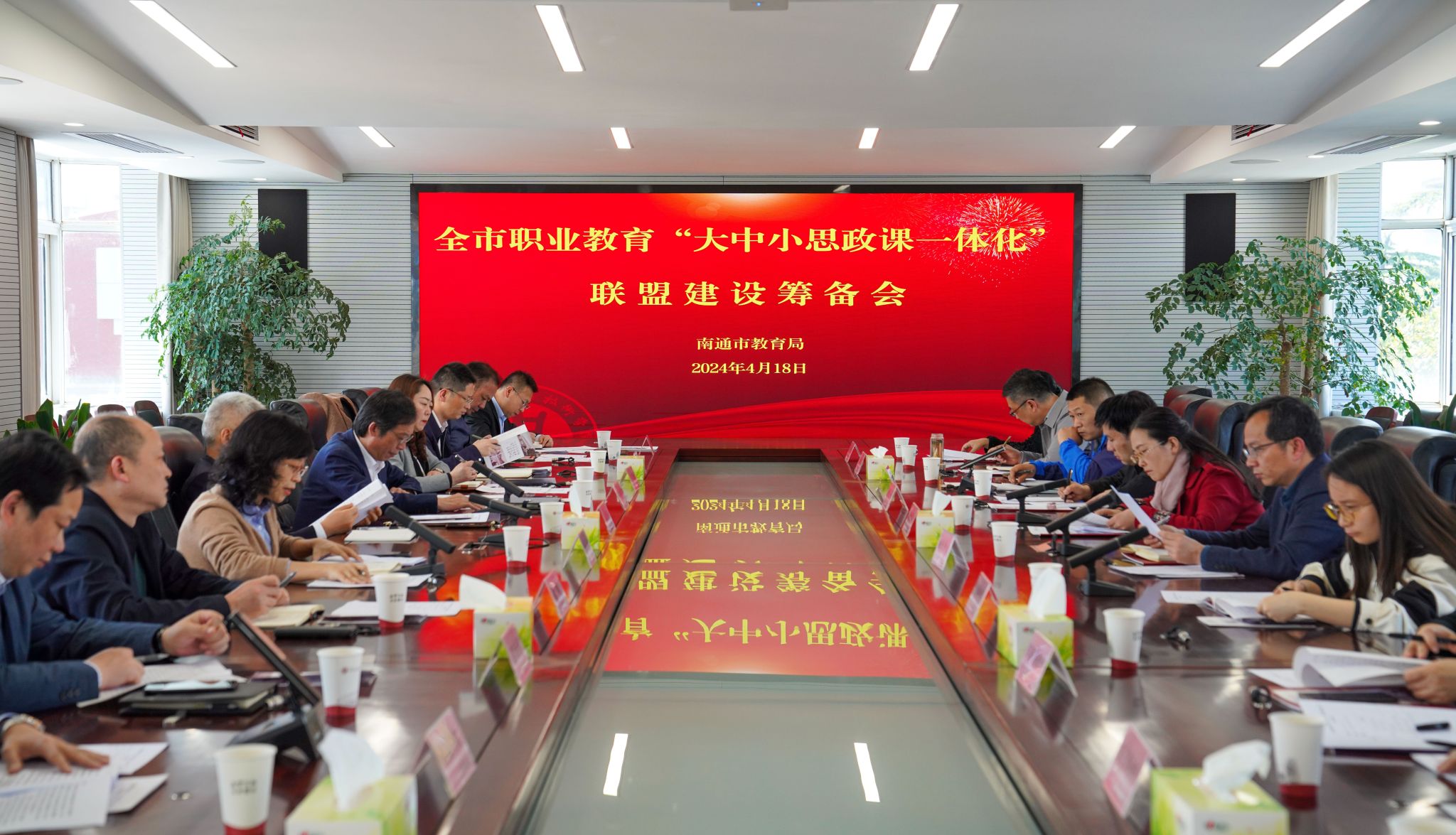 4月18日下午,全市职业教育“大中小思政课一体化”联盟建设工作筹备会在我校行政楼三楼召开。南通市教育局党组成员、副局长许新海,南通市教育局职高教处处长李维、副处长姜文博,我校党委书记秦志林,校党委委员、党委宣传部部长王希颖,校学工部部长徐明,教务处副处长黄海涛出席会议。我校马克思主义学院党总支书记钱晋、副院长朱建和来自南通市新区学校、南通师范学校第三附属小学、南通市实验中学、南通市新桥中学、南通田家炳初中、南通市小海中学、通州中等专业学校等联盟单位代表参加会议。会议由李维主持。
